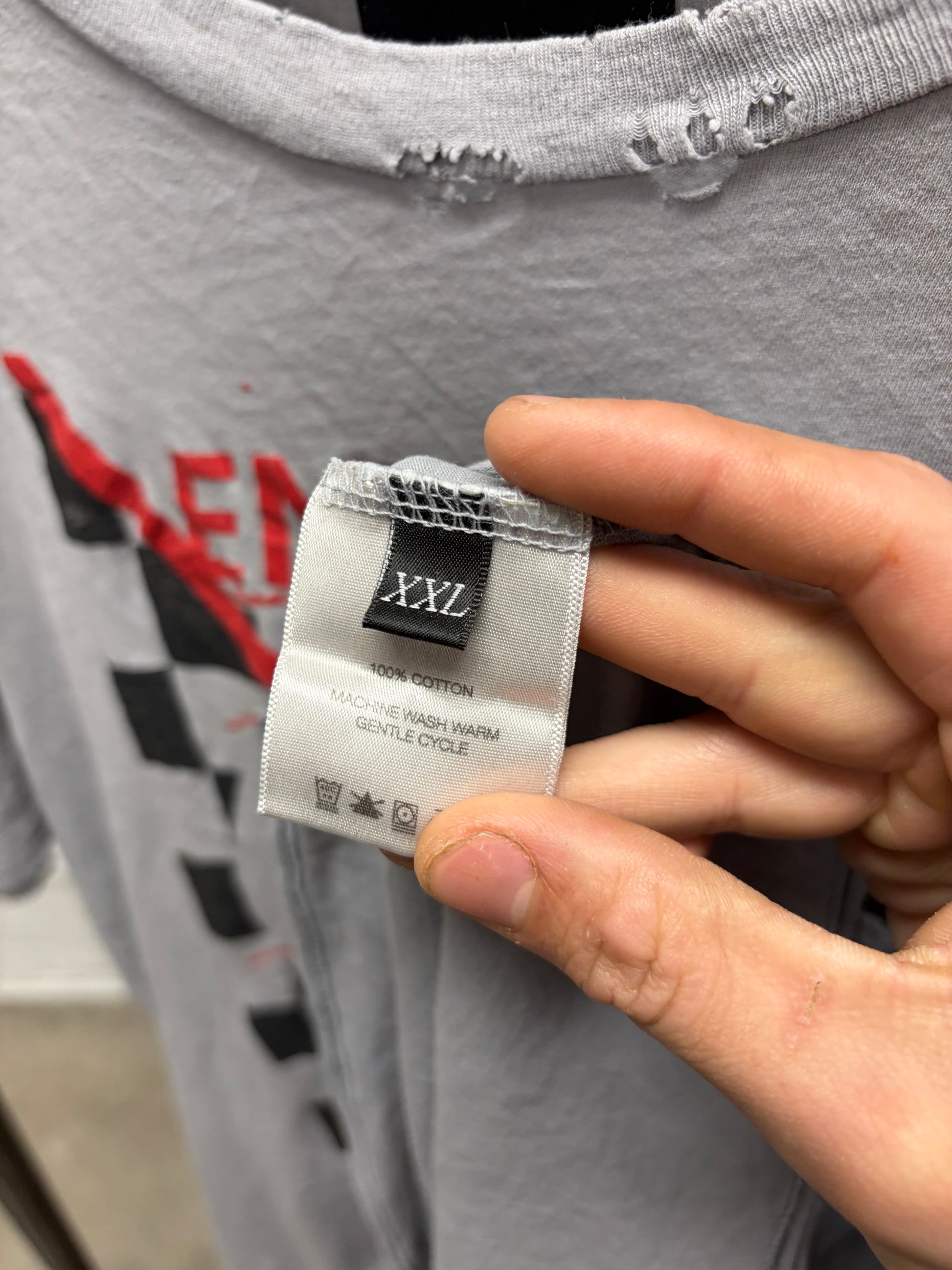 SS2025 Enfants Riches Deprimes ‘Checkered Fan’ Distressed Grey Cotton T-Shirt