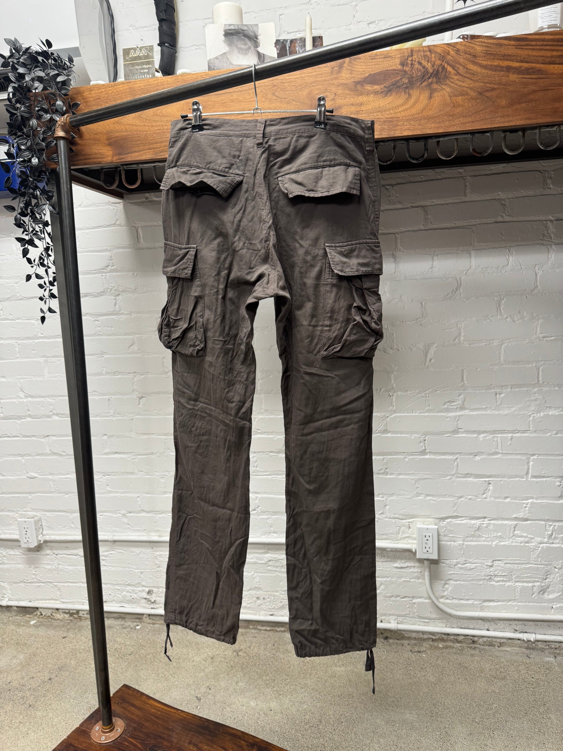 For sale is a pair of Undercover ‘Lightning Bolt’ Embroidered Logo Brown Cargo Pants