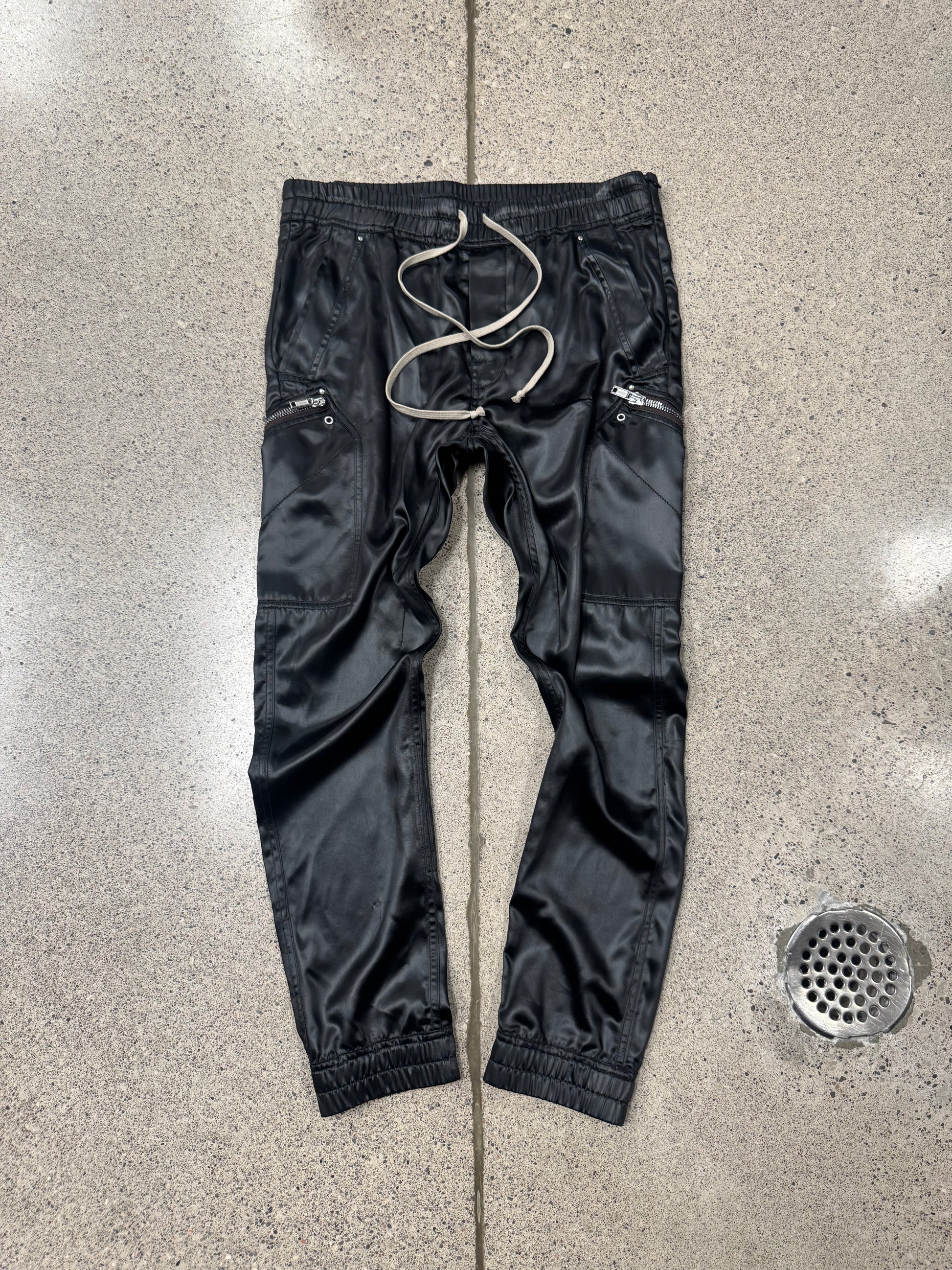 -Satin black glossy finish, classic Rick Owens Cargo Jogger Shape