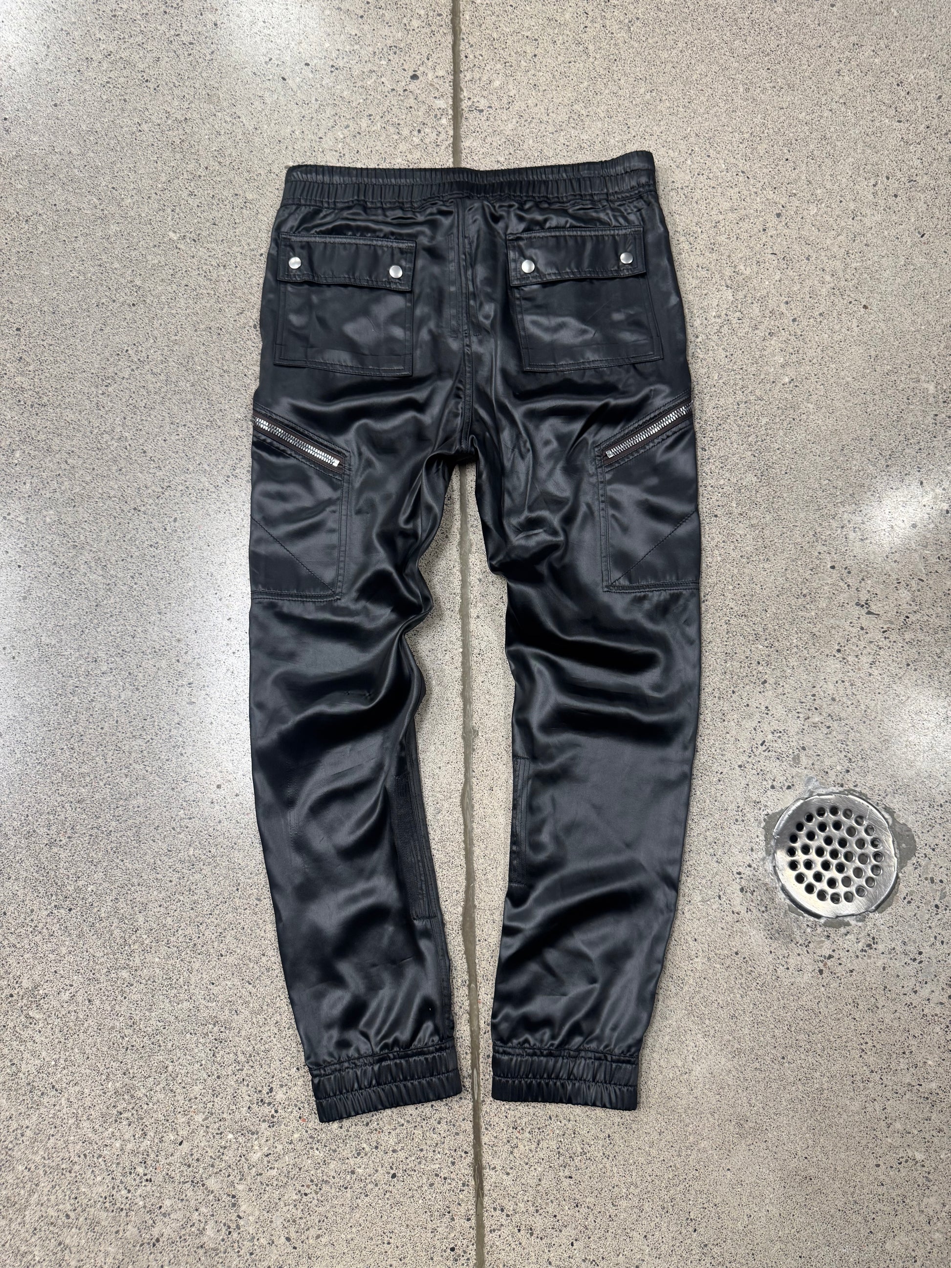 AW2020 Rick Owens ‘Performa’ Black Satin Cargo Pants