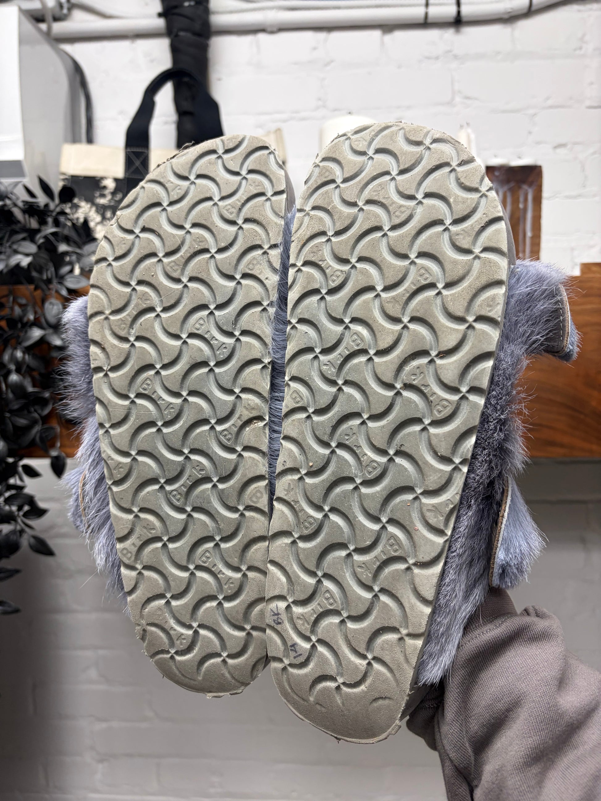 For sale is a pair of Rick Owens x Birkenstock ‘Arizona’ Pony Hair Sandals