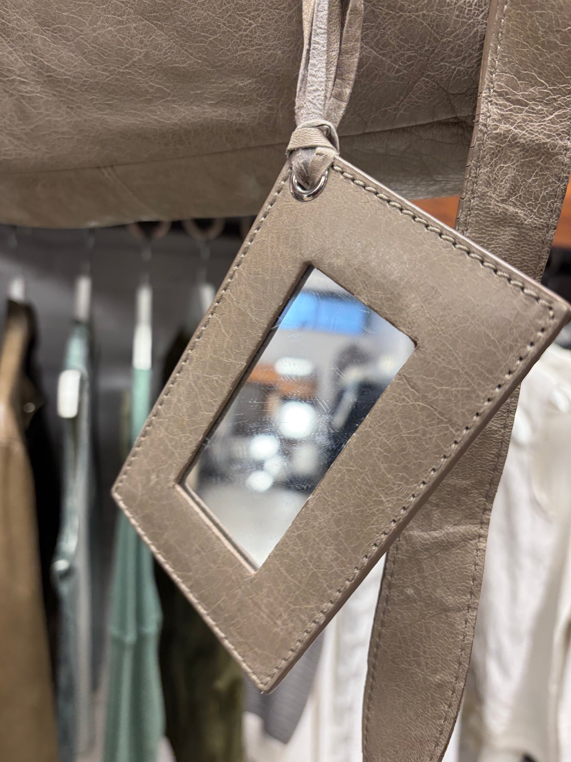 (FOR SALE) A Balenciaga Mini Taupe Brown ‘City Bag’ with Mirror and Crossbody Strap
