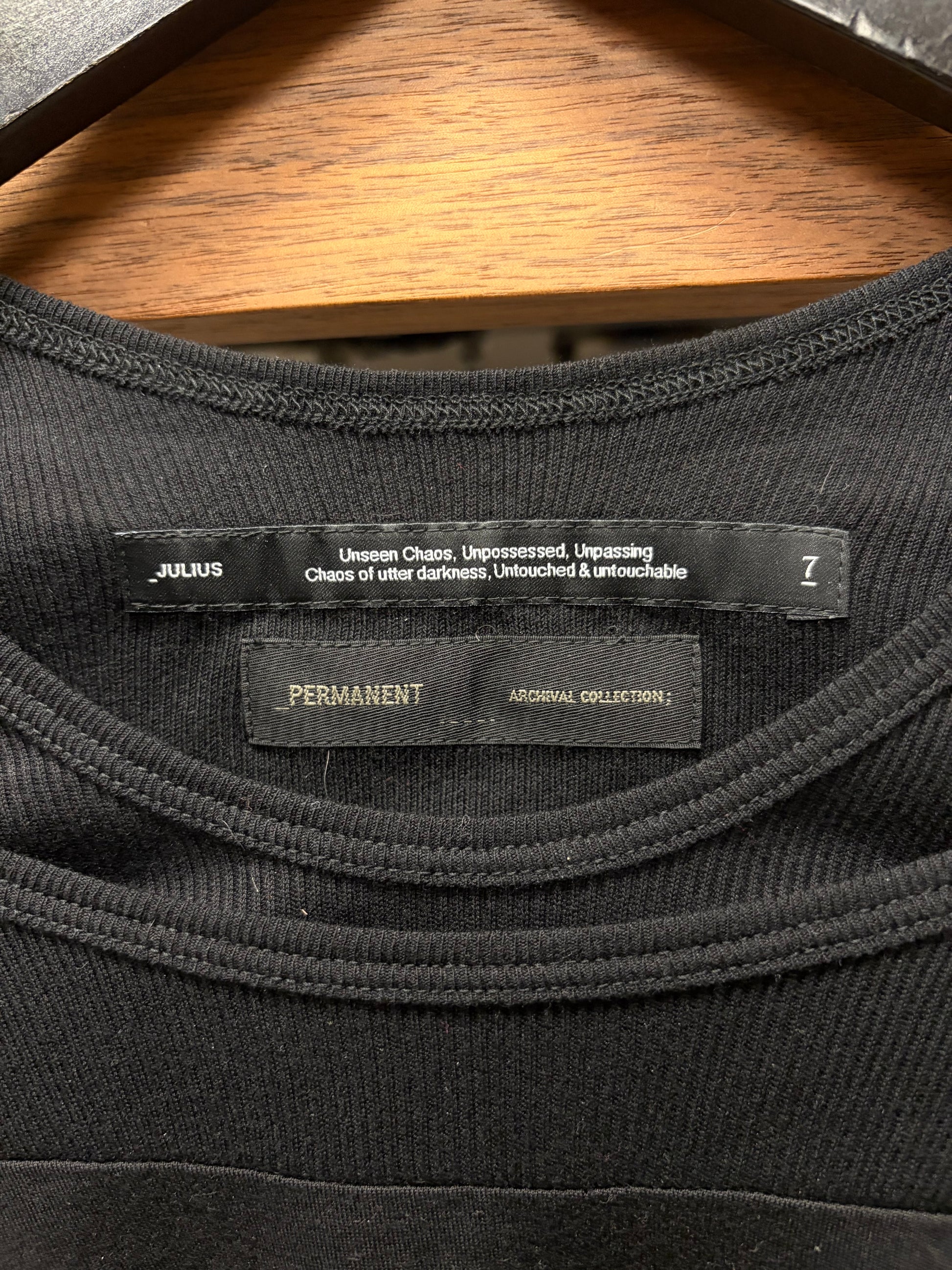 For sale is a SS2025 Julius Layered Ribbed Black Tank Top/T-Shirt