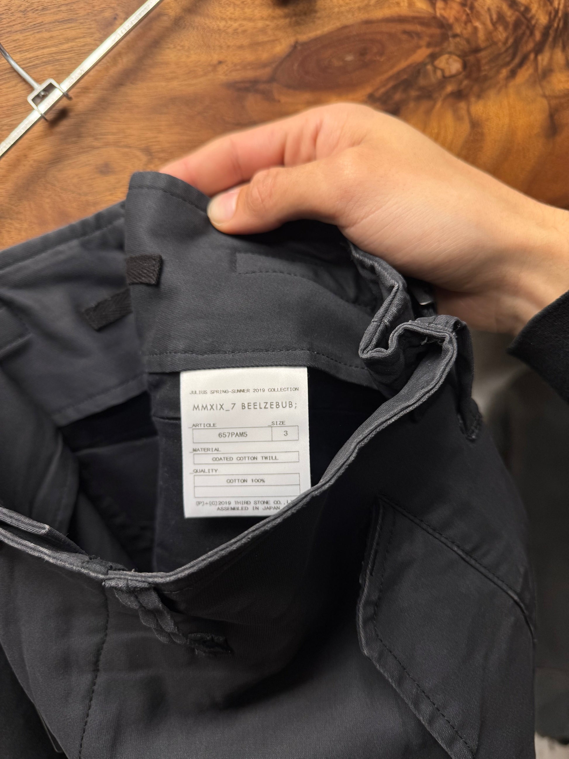 For sale is a pair of SS2019 Julius Coated Cotton Twill Cargo Shorts