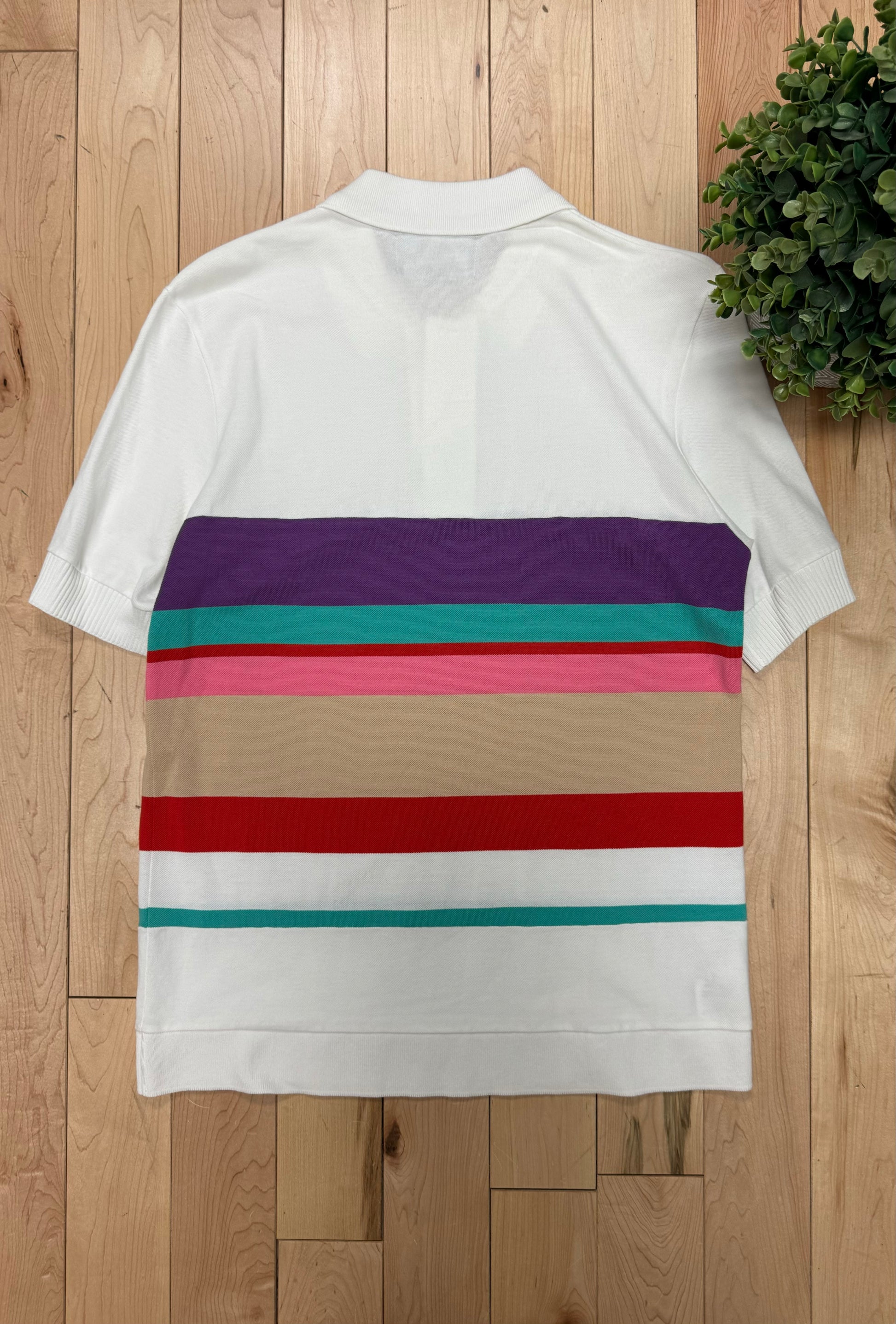 For sale is a classic Raf Simons x Fred Perry Striped Polo. Coming in a crisp white with varying colors striped across the chest, this top features an embroidered Fred Perry crest logo on the chest, replaced with Raf Simons branded scripture beneath. Best suited for a size large, this piece is in great overall condition.