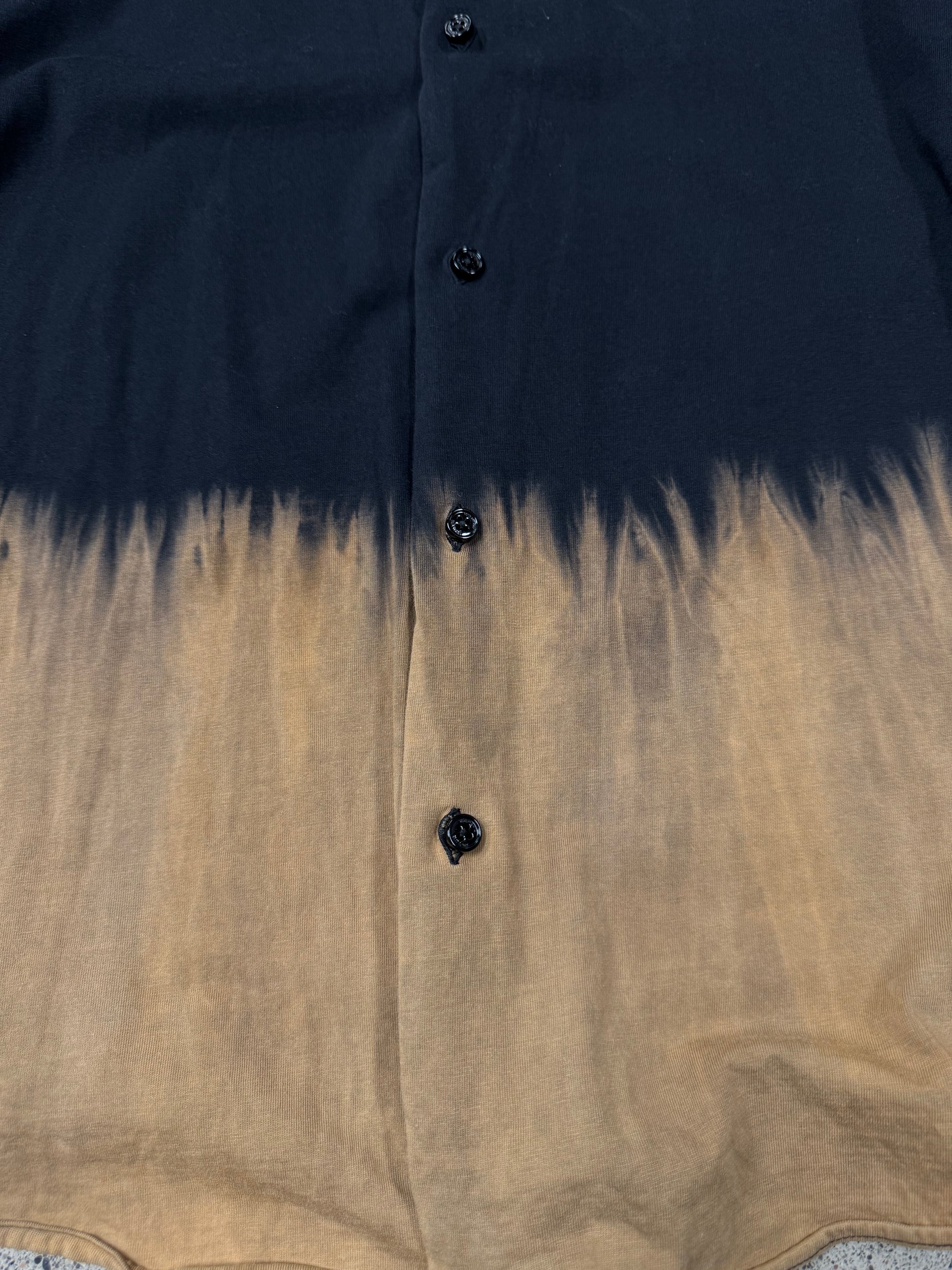 -half/half black bleach dyed bottom portion, each of these shirts features slight variance in the dye process as its a unique wash treatment with each garment