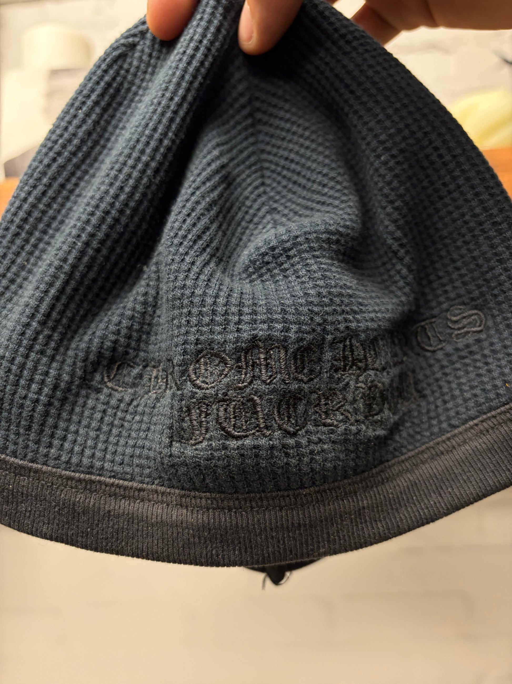 -thermal knit exterior with Chrome Hearts ‘Fuck You’ branding embroidered on the exterior.