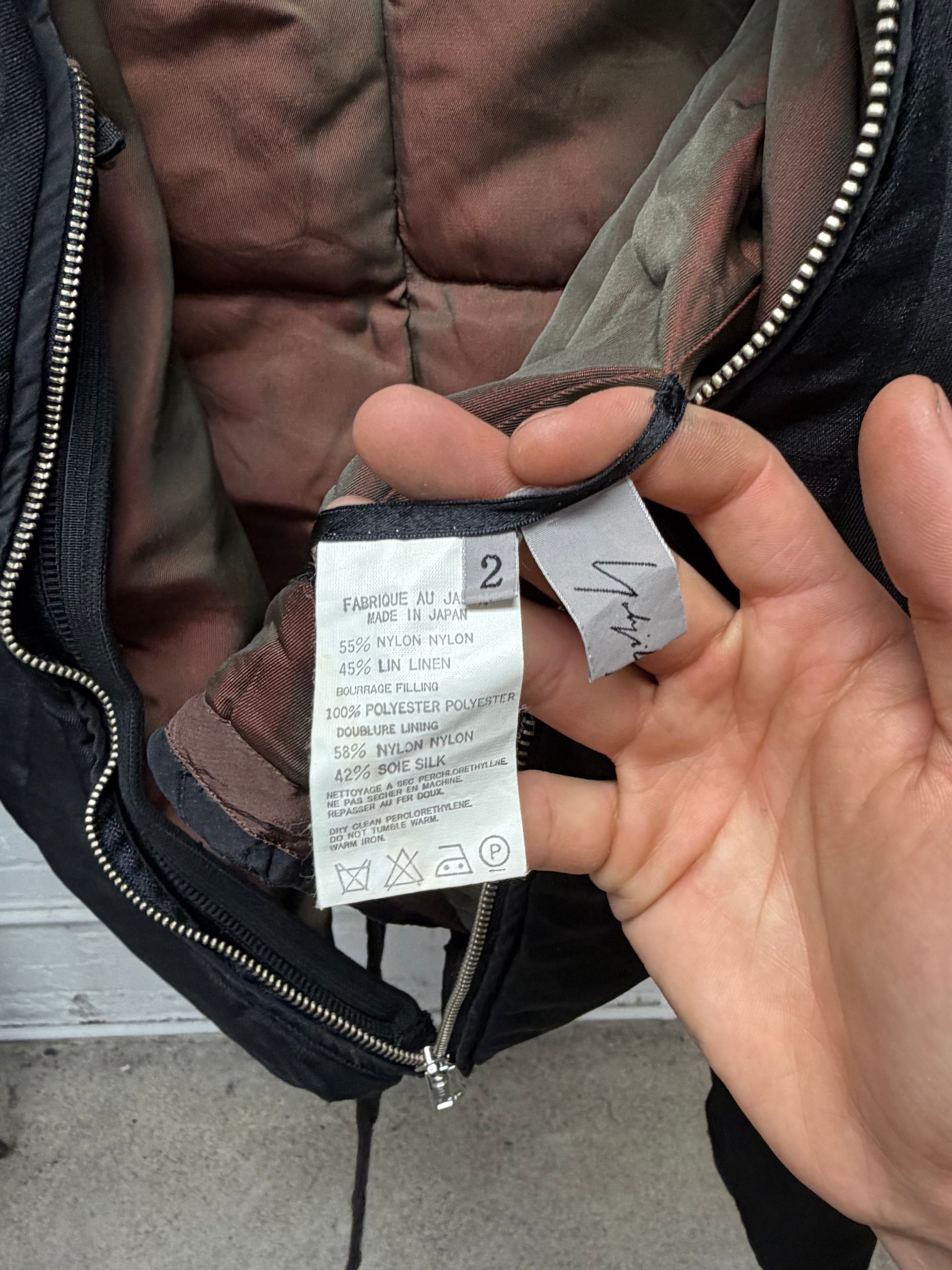 For sale is a Vintage 90s Yohji Yamamoto Mainline ‘Vertical Logo’ Cropped Black Bomber Jacket