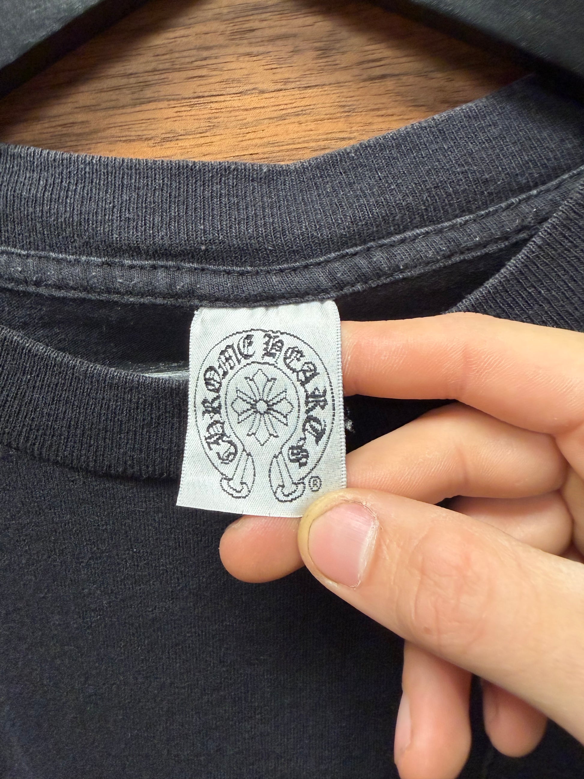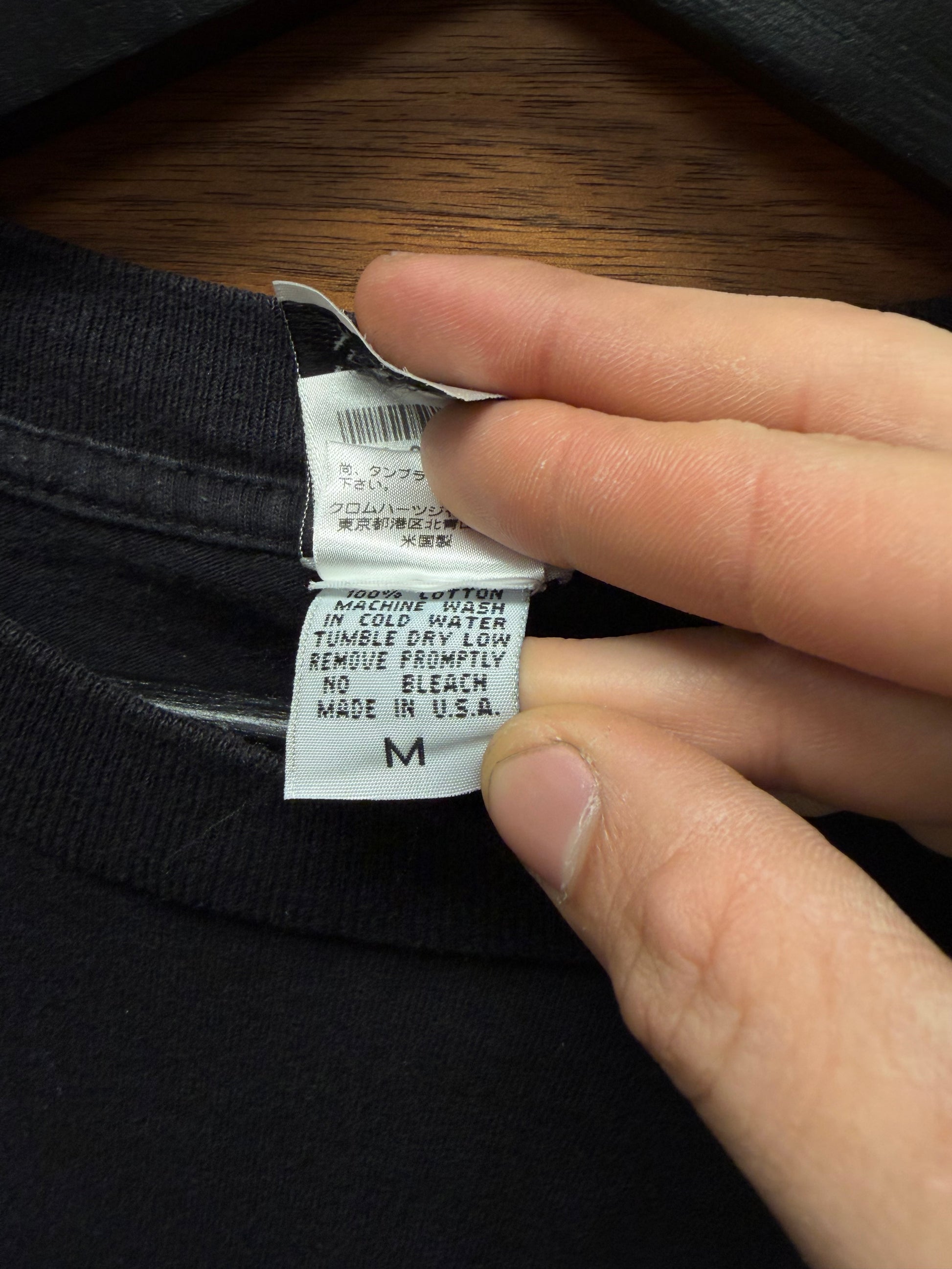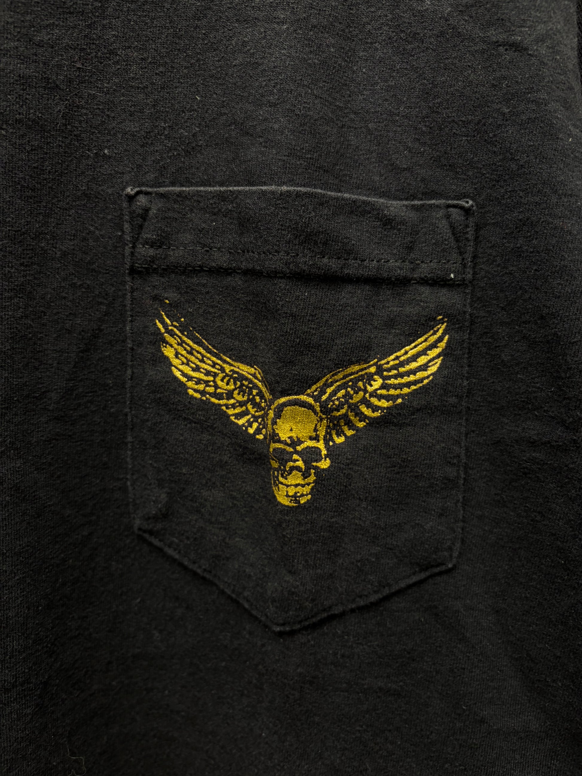 For sale is a Vintage Chrome Hearts ‘Foti Wings’ Gold Skull Logo Black Graphic T-Shirt