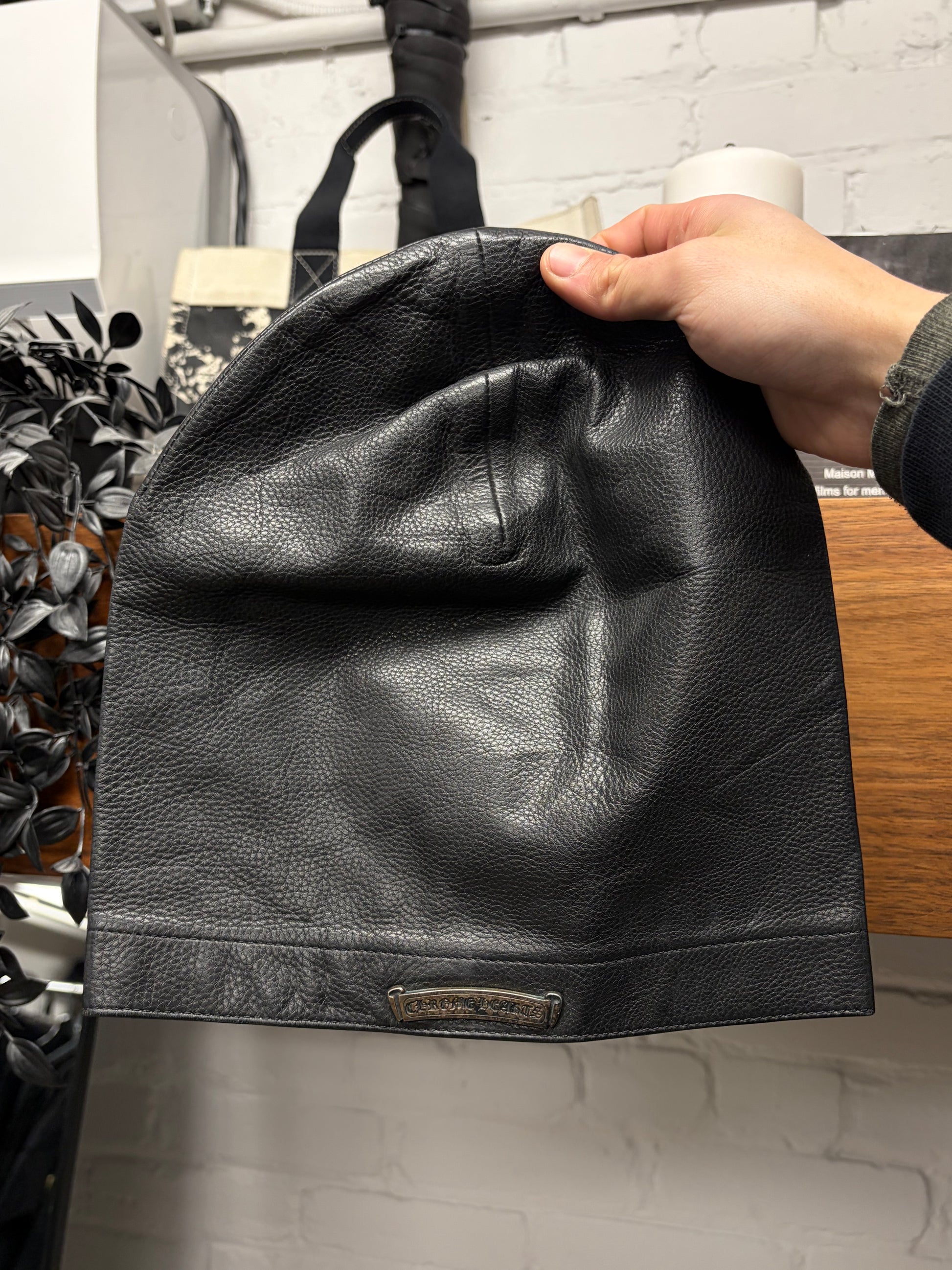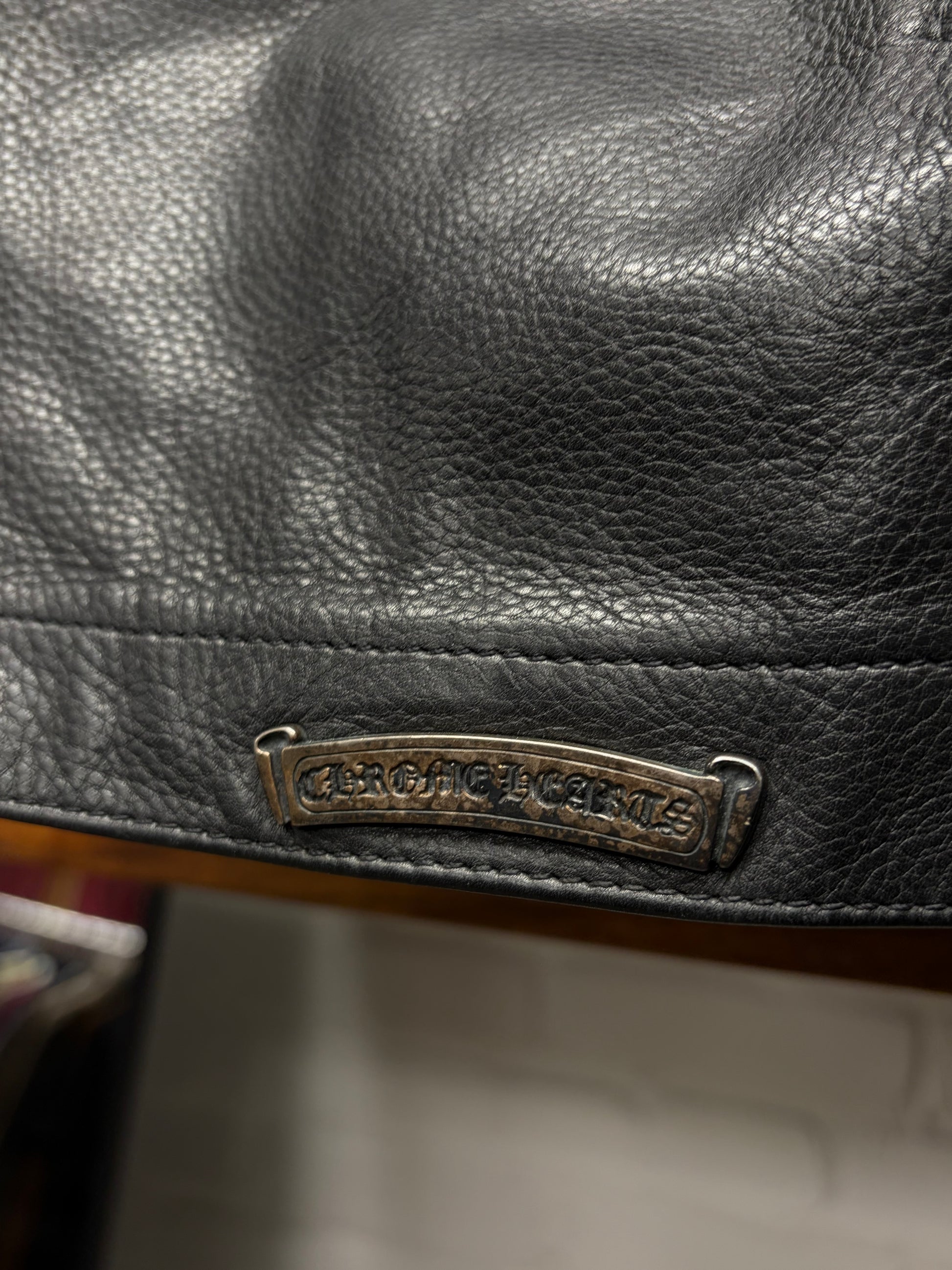 (FOR SALE) A Vintage Chrome Hearts Leather Scroll Logo Biker Skull Cap