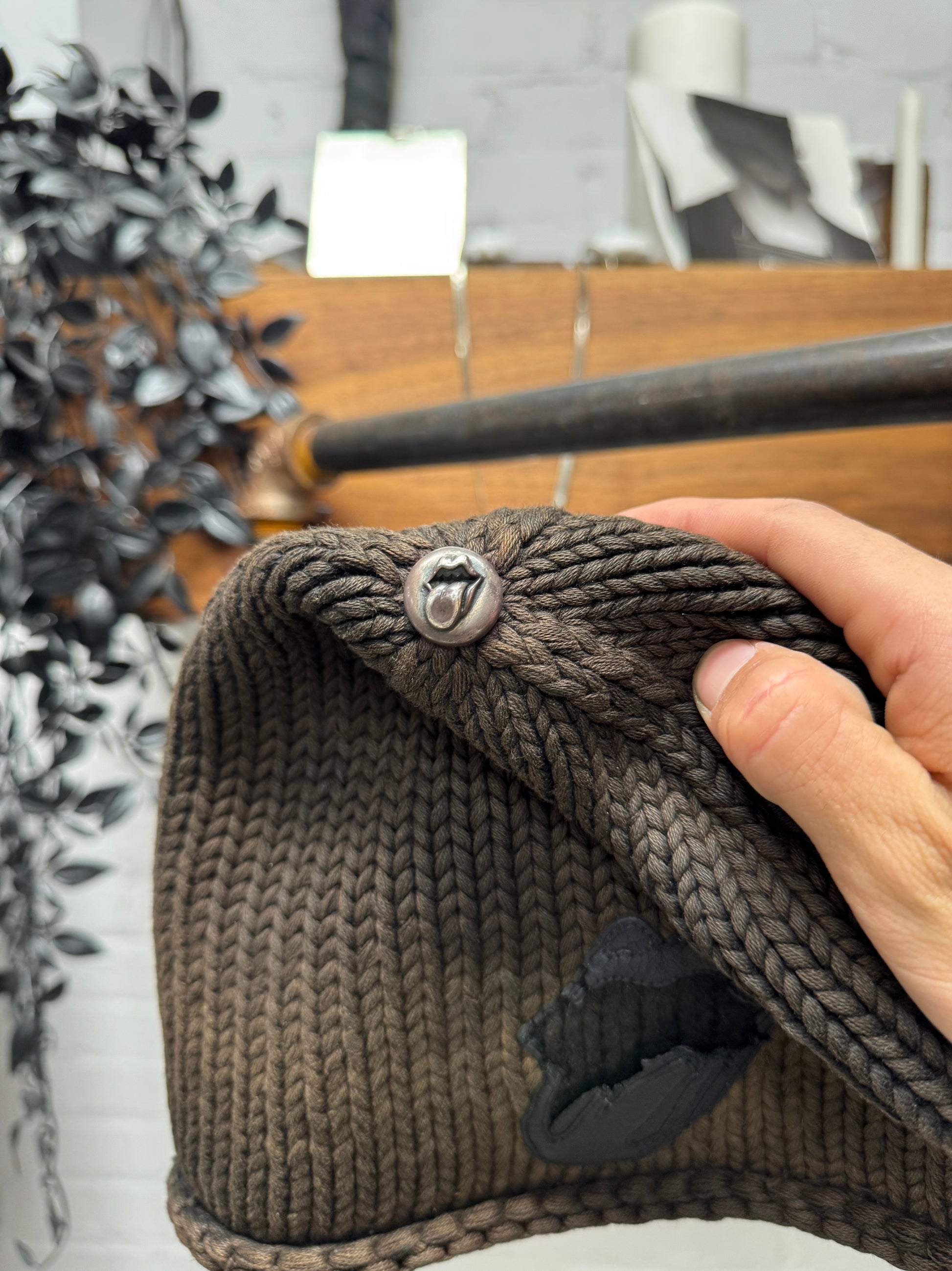 (FOR SALE) a Vintage Chrome Hearts ‘Rolling Stones’ Leather Patch ‘Sun Faded’ Brown Beanie
