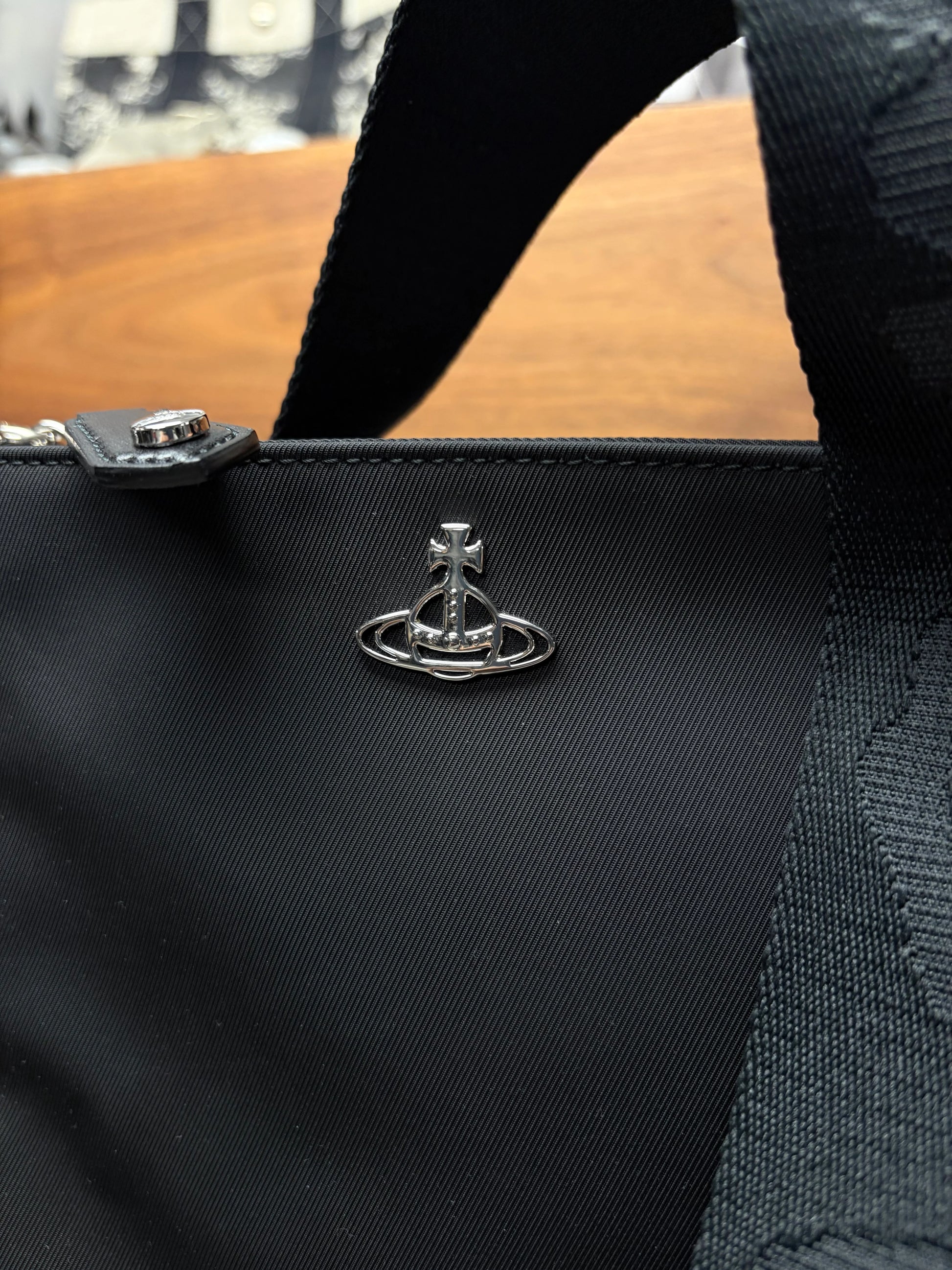 For sale is a Vivienne Westwood ‘Orb Logo’ Black Nylon Crossbody Bag