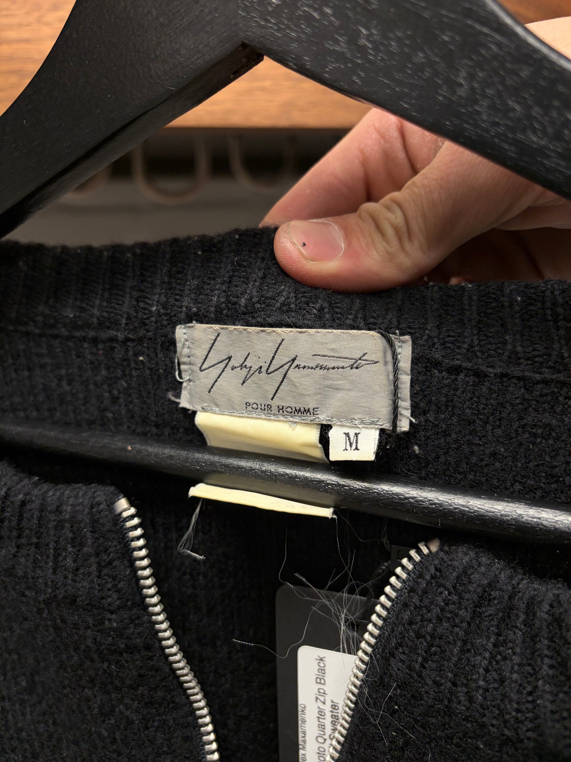 For sale is a Yohji Yamamoto Pour Homme Quarter Zip Black Wool Knit Sweater