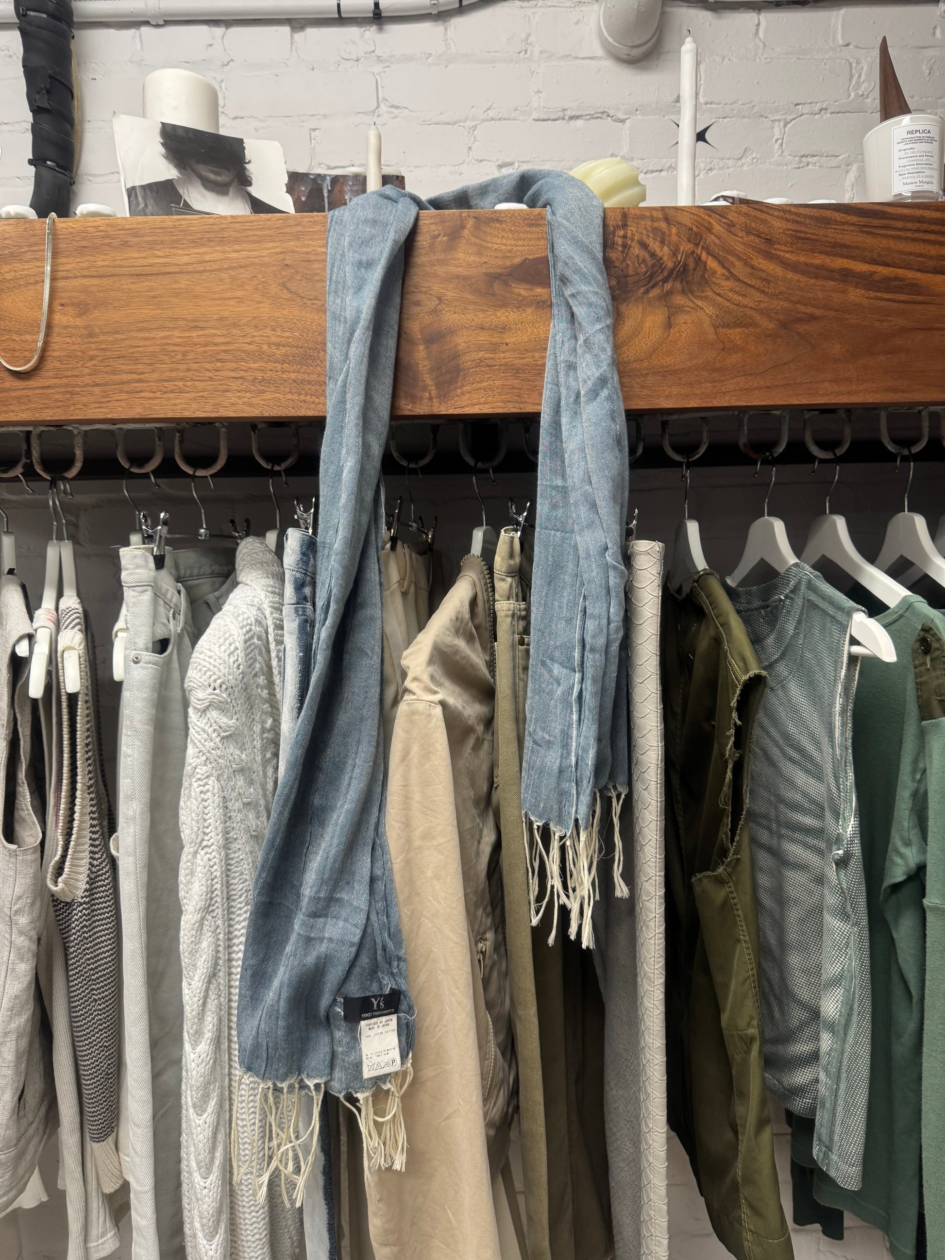 Yohji Yamamoto ‘Y’s’ Blue/White Fringed Sheer Cotton Scarf